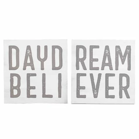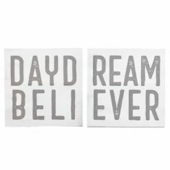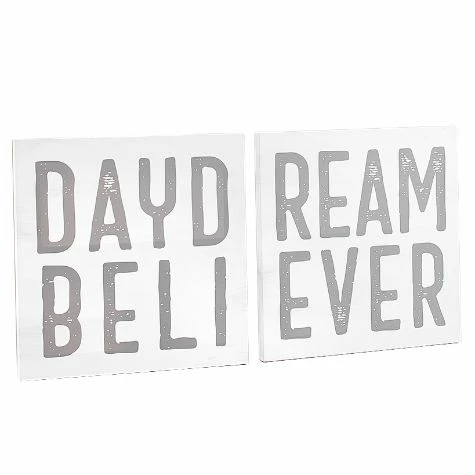 Accent any room with this 2-Pc. Daydream Believer Canvas Wall Art. Hang the 2 separate signs side by side to to spell “Daydream Believer.” The wall art features neutral colors that pair easily with existing decor. Made from:MDF and canvasMeasurements:15″ sq., eachNotes:Ready to hang