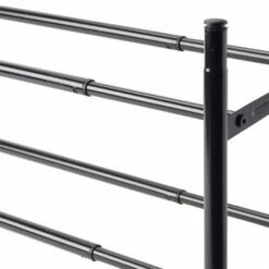 Store up to 6 pairs of shoes on this 2-Tier Expandable Shoe Rack, or expand it to almost double the size to hold 12 pairs. It keeps your footwear organized and not jumbled together on the floor of your closet. Has rubber feet to protect your flooring. Made from: Steel and polypropyleneMeasurements: 24-1/2″ to 45″W x 8-3/4″D x 14″HNotes: Assembly required; assembly hardware included