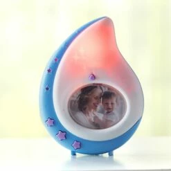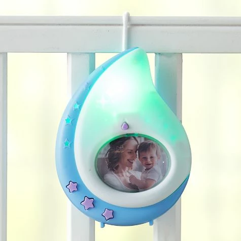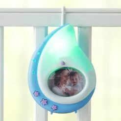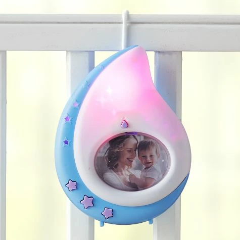 Help your baby fall asleep quickly and easily with this 3-In-1 Night Light. It features a variety of light settings and soothing music functions. It also has a changeable picture frame to hold a photo of your little one. Made from: ABS plasticMeasurements: 4-1/2″W x 1-1/2″D x 6″HNotes: Requires 3 “AAA” batteriesFor ages 0-12 months