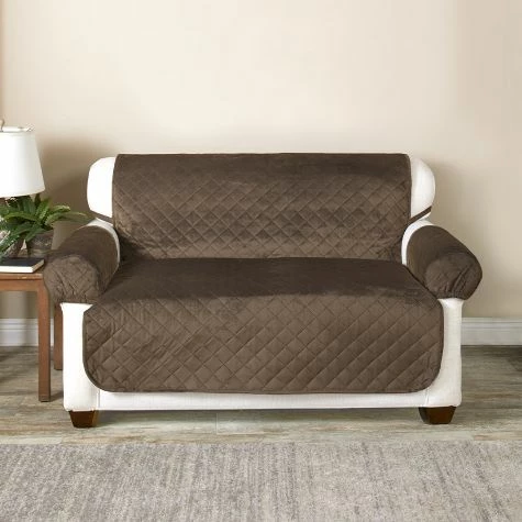 Guard your upholstered pieces from dirt, spills, stains and pets with this 3-Pc. Waterproof Furniture Protector. It features a cover for the seating area and two separate armrest covers. Each cover is quilted and has elastic bands to hold it in place. Has a plush construction with a waterproof, nonslip backing. Made from: Polyester with polyfillMeasurements: Chair/Recliner (27″W x 74″L) fits 30″ to 48″W chairsLoveseat (48″W x 74″L) fits 53″ to 78″W loveseatsSofa (69″W x 74″L) fits 70″ to 105″W sofasAll armrest covers, 8″W x 17″LCare: Machine careNotes: Imported