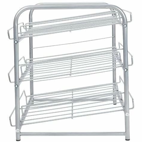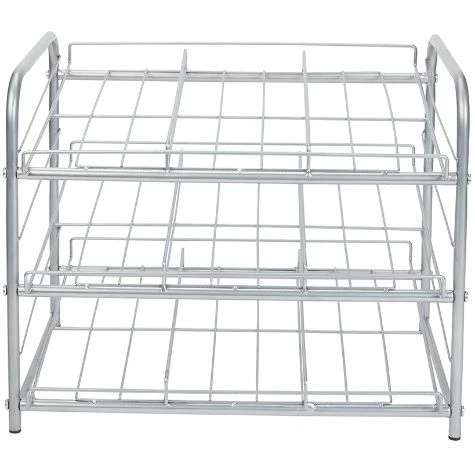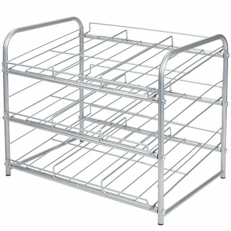 Enjoy a well-ordered pantry or cabinet with this 3-Tier Can Organizer. Store cans or small jars on the 3 shelves, which can hold up to 3 cans wide and 3 cans deep per shelf. Because the shelves are angled, cans roll forward when one is removed, so you can see when it’s time to restock. Made from: MetalMeasurements:15″W x 11″D x 11″HNotes: Assembly required; assembly hardware included
