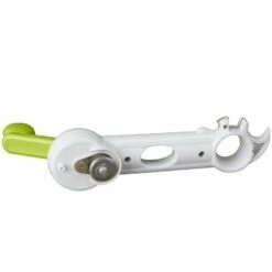 Open any can, jar or bottle quickly and easily with this 6-In-1 Can Opener. This single device features 6 openers. It opens cans and leaves no sharp edges. Has an ergonomic handle. Made from:Plastic and metalMeasurements:8″W x 2-1/4″D x 2″H