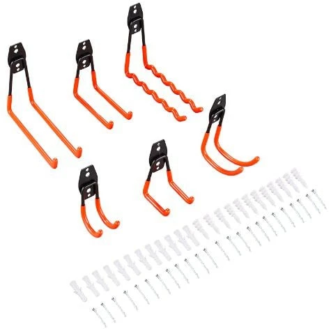 6-Pc. Set Of Orange Garage Hooks