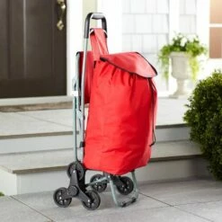 Easily maneuver up stairs and over curbs with this 6-Wheel Shopping Cart with Seat. It features a waterproof drawstring bag that holds up to 66 pounds. For shopping excursions, it not only holds your bags, but also allows you to have a seat anywhere. Apartment building residents who need help up the stairs will also find it useful. Made from: Metal, polyester and plasticMeasurements:16″W x 37″LSeat, 10″ sq.Notes:Imported