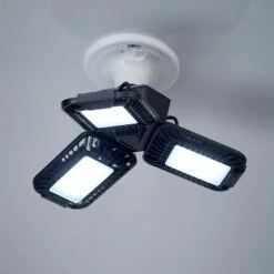 Brighten up dimly lit areas with this Adjustable Trilights Ceiling Light. The 3 LED panels can be adjusted to direct the light where you need it. Installation is as easy as screwing in a light bulb. No tools, no wiring and no professional electricians are needed. Perfect for kitchen, office, workshop and more. Made from: ABS plasticMeasurements: Folded, 6-1/8″ dia. x 4-1/2″HExtended, 11″ dia. x 4″H