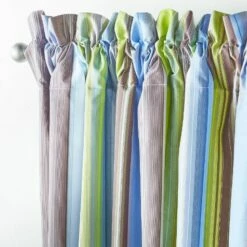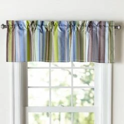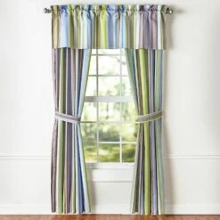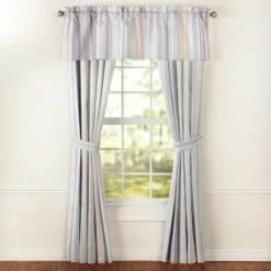 Give any room a fresh look with an Aidan Stripe Window Curtain or Accent Pillow. All pieces feature repeating stripes in a variety of shades. Panel comes with a tie-back. Accent Pillow16″ sq.Polyester with polyfillImportedWindow Valance60″W x 16″LPolyesterMachine careImported63″ Panel50″W x 63″LPolyesterMachine careImportedSold individually; 2 panels shown84″ Panel50″W x 84″LPolyesterMachine careImportedSold individually; 2 panels shown