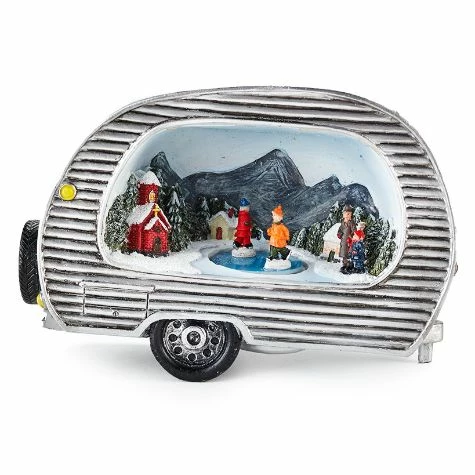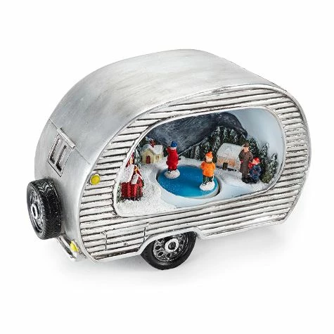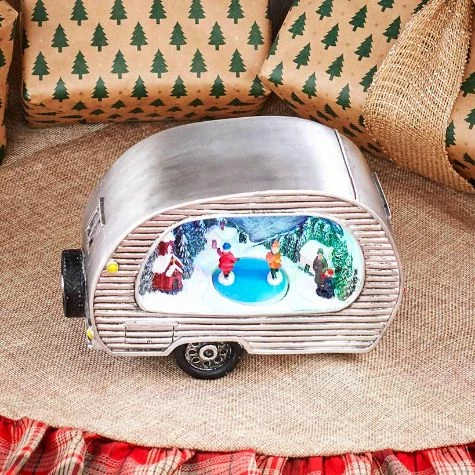 The Animated Christmas Pick-Up Truck or Camper is a charming decor item for the coffee table, mantel or entryway table. The Pick-Up Truck features Santa in the driver’s seat and a lighted winter scene with an animated skating couple in the truck bed. The Camper shows a neighborhood snowscape with an ice skating couple. Made from: Cold cast ceramicMeasurements: Approx. 11-1/4″W x 4-1/2″D x 5″HNotes: Requires 3 “AA” batteries