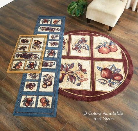 Add visual interest with this Antique Fruit Rug Collection. Each rug features colorful images of fruit and protects your floor in high-traffic areas. The Oversized Accent Rug and the Round Rug cannot be shipped to P.O. boxes or APO/FPO addresses. Accent Rug22″ x 36″OlefinImportedOversized Accent Rug31″ x 47″ Olefin ImportedRunner23″ x 88″ Olefin Imported Round Rug63″ dia.Olefin Imported