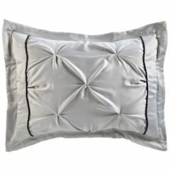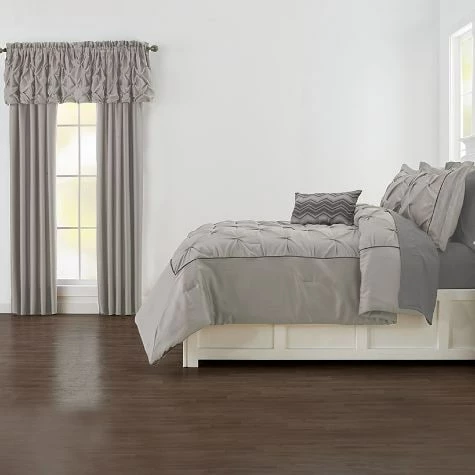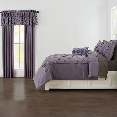 Give your bed a sophisticated, modern look with the Ashlyn Rushed Comforter Emsemble. Each piece features a luxurious sateen fabric. The Sham and Comforter have pleated detailing. The Accent Pillow has a chevron pattern. Sham26″W x 20″LPolyester Machine careImportedAccent Pillow 18″W x 12″L Polyester with polyfillImportedFull/Queen Comforter86″ sq. Polyester Machine careImportedKing Comforter 100″W x 90″LPolyester Machine careImported