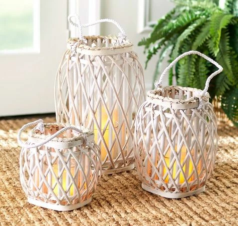 Complement your coastal-inspired decor with a Bamboo and Wood Lantern. A holder inside each lantern fits your own 3″ dia. candle. Perfect for a summer, lake or beach house. Use indoors or outdoors on a covered porch. Made from:Bamboo, wood and glassMeasurements:Small, 8-1/2″ dia. x 8″HMedium, 8-5/8″ dia. x 11-1/2″HLarge, 9-7/8″ dia. x 15-1/2″H