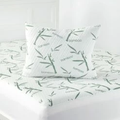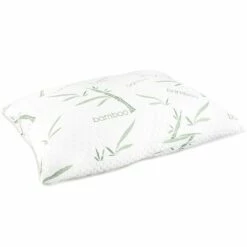Stay cool and comfy all night long with this Bamboo Cooling Pillow. The cover is infused with bamboo fibers, keeping you naturally cool and also providing antimicrobial benefits. Pillow supports your neck while conforming to your body. Ideal for any sleep position. Made from:Polyester and bamboo with polyfillMeasurements:26″W x 20″LCare:Machine careNotes:Imported