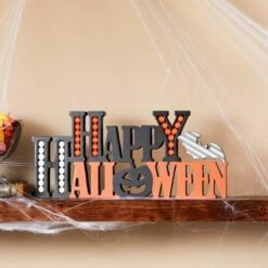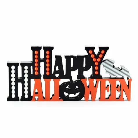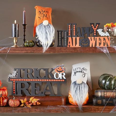 Give your Halloween decor a new twist with this Beaded Farmhouse Halloween Sign. It brings farmhouse style to Halloween decorating. Stand it on a table, mantel or shelf surrounded with spooky accents for a unique display. For indoor use only. Made from: MDF and woodMeasurements: Happy Halloween, 14″W x 6-1/8″LTrick or Treat, 16″W x 8-3/4″L