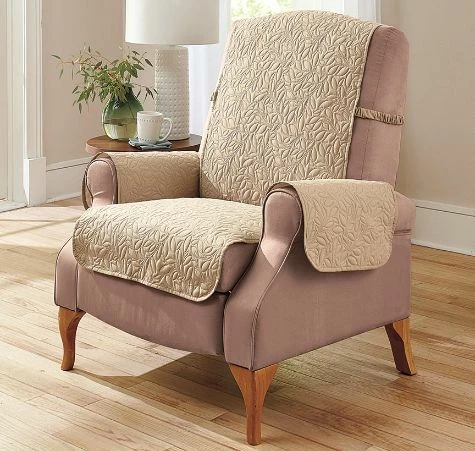 Made from easy-care microfiber, these Belmont Secure-Fit Furniture Protectors help keep chairs, sofas and loveseats looking their best. Stylish, too, thanks to pinsonic leaf quilting. Protect furniture from spills, stains and pet hair. Each comes with foam noodles to securely keep the cover on your furniture and prevent it from sliding around. Covered elastic side straps help hold everything in place. Made from:PolyesterMeasurements:Recliner, 23″W x 78-1/2″D; arm panels, 21″W x 16″LLoveseat, 46″W x 76″D; arm panels, 21″W x 24″LSofa, 68″W x 76″D; arm panels, 21″W x 24″LXL Sofa, 78″W x 76″D; arm panels, 21″W x 24″LCare:Machine washNotes:Imported