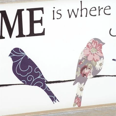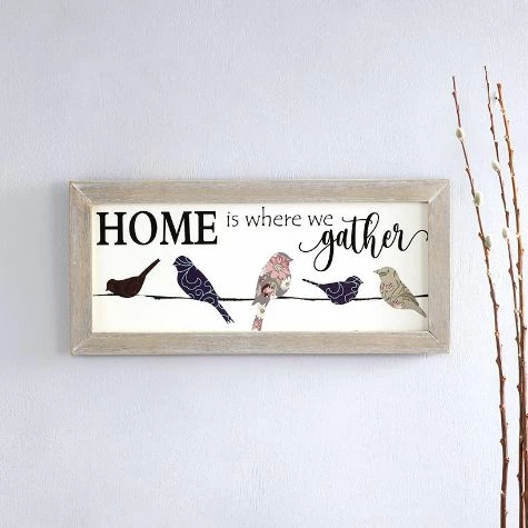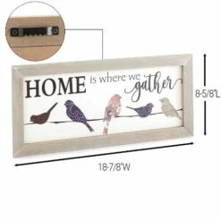 Accent any wall with this Bird Motif Wall Art. It features birds on a wire with the sentiment “Home is where we gather.” It has a smooth finish and a vintage look. Perfect for the kitchen! Made from:MDFMeasurements:18-7/8″W x 8-5/8″LNotes:Ready to hang