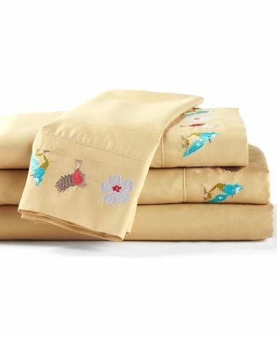 Bird lovers are sure to want this Bird Whisper Sheet Set on their bed. It features embroidered detailing along the top of the flat sheet and hem of the pillowcases. Fitted sheets fit mattresses up to 14″ deep. The King set comes with king-size pillowcases. Made from: PolyesterSet includes:- Flat sheet- Fitted sheet- 2 Pillowcases Care: Machine careNotes: Imported