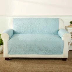 Brighten up your living space and protect your upholstered pieces with a Blue Paisley Furniture Cover. The quilted cover features a solid blue background with an all-over paisley design. Chair/Recliner65″W x 75″L, overall- Back flap, 39″L- Arm flap, 21-1/2″W- Seat, 22″W- Seat flap, 36″LPolyester with polyfillMachine careImportedLoveseat88″W x 75″L, overall- Back flap, 39″L- Arm flap, 21-1/2″W- Seat, 45″W- Seat flap, 36″LPolyester with polyfillMachine careImportedSofa110″W x 75″L, overall- Back flap, 39″L- Arm flap, 21-1/2″W- Seat, 67″W- Seat flap, 36″LPolyester with polyfillMachine careImported