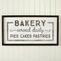 Create a bakery look in your kitchen with these Buffalo Check Bakery decor items. The Black and White Bakery Sign hangs on a wall and announces that pies, cakes and pastries are being served. The Buffalo Check Chef Gnome wears a black and white buffalo check chef’s hat and can sit on his own on a nearby countertop. Black and White Bakery Sign21″W x 11″LMDF and woodBuffalo Check Chef Gnome7″HPolyester and polypropylene with polyfill