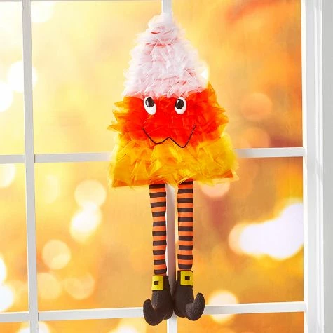 Add a touch of whimsy to your home decor with this Candy Corn Halloween Collection. The Greeter resembles a piece of candy corn wearing a witch’s hat. Stands by itself. The Lighted Candy is battery operated for placement anywhere in your home. The Lighted Tree resembles a piece of the candy. The Door Hanger features long dangling legs and googly eyes. GreeterStanding, 6-1/2″W x 5″D x 23-1/2″HPushed down, 6-1/2″W x 5″D x 17″HPolyester and metalLighted CandyRequires 3 “AAA” batteries4-3/8″W x 3-3/8″D x 7-7/8″H Cold cast ceramicLighted TreeRequires 3 “AAA” batteries12-1/2″W x 20″LPlastic and polyesterDoor Hanger9-1/2″W x 14″LPolyesterReady to hang