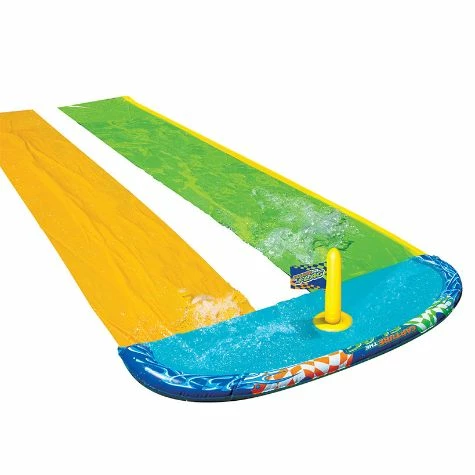 Kids will have backyard fun in the sun with this Capture the Flag Racing Slide. Two players strive to be the first one to grab the flag. Each player has their own lane. Made from: PVCMeasurements: 5 ft. 8 in. wide x 16 ft. deep x 11-1/2 in. highNotes: For 2 playersFor ages 5 and up