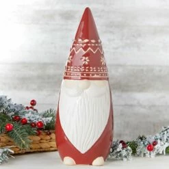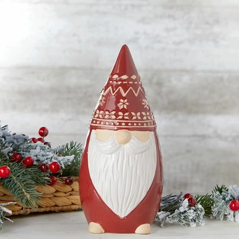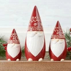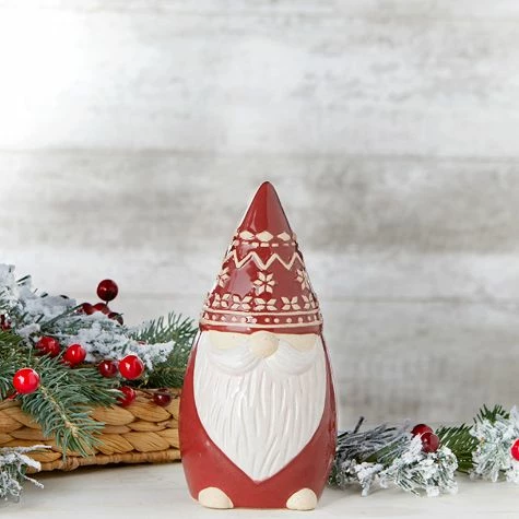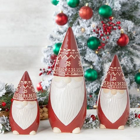 Add a whimsical touch to your home decor with these cute Ceramic Gnome Figurines. Each features a fair isle pattern on its hat that’s perfect for the winter season. Arrange them in a row by height or scatter them around a room. Made from:StonewareMeasurements:6″ Gnome, 3″W x 1-3/8″D x 5-7/8″H8″ Gnome, 3-1/2″W x 3-1/2″D x 7-1/2″H10″ Gnome, 3-7/8″W x 3-7/8″D x 10″H