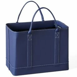 The Chic File Organizer is a super-stylish way to keep your important documents sorted. With sturdy sides and base, its exterior features a faux leather material with white topstitching. Has removable metal rails to hang your own file folders on. Double handles make carrying easy. Made from:14″W x 9″D x 10-1/2″H, with a 6″ strap dropMeasurements:Polyurethane, paperboard and polyesterNotes:Imported
