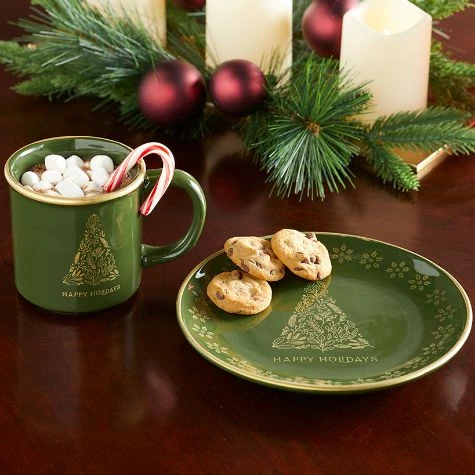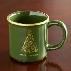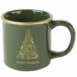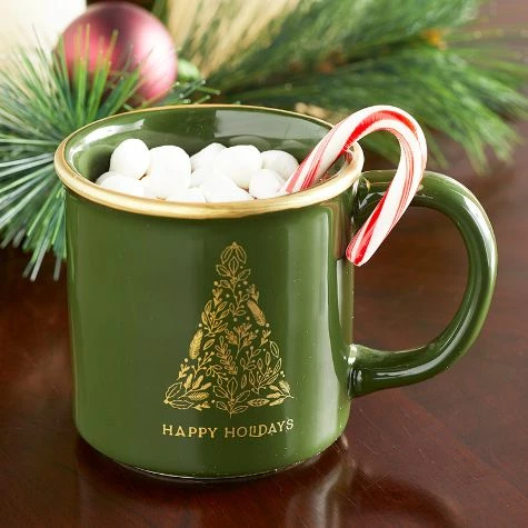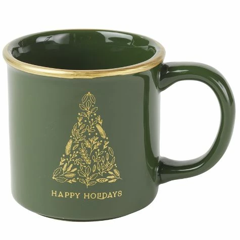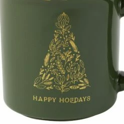 Sip your favorite hot beverage during the holidays from this Christmas Pine 17-Oz. Mug. The oversized mug features a stunning pine tree design in goldtone on green with goldtone trim on the rim. Includes the greeting “Happy Holidays.” Made from: DolomiteMeasurements: 17 oz.Care:Hand wash