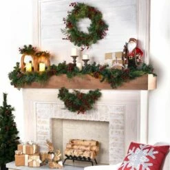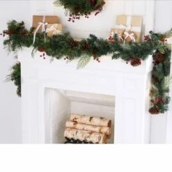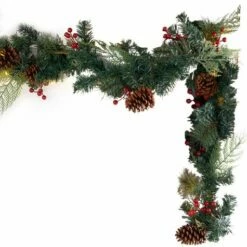 Beautifully decorate your mantel, stairway railing or door frame with this Classic 72″ Garland. It features faux greenery with pine cones and red berries. For indoor use only. Made from: Polypropylene, PVC and metalMeasurements:72″L