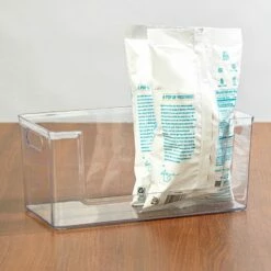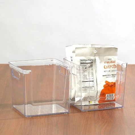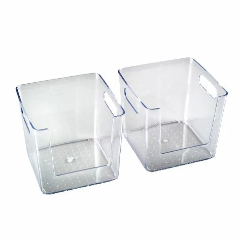 Keep your pantry neat and organized with these Clear Pantry Baskets. Clear sides let you find what you’re looking for quickly and easily. Set of 3 Mini Baskets3-1/2″W x 7-3/4″D x 2-1/2″H, eachPlasticSet of 2 Baskets2 Square, 6-1/2″ sq. x 5-3/4″H, each2 Rectangle, 3-1/2″W x 11-1/2″D x 2-1/2″H, eachPlasticSingle Basket13″W x 6-1/4″D x 5-3/4″HPlastic