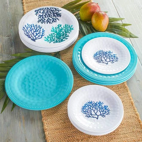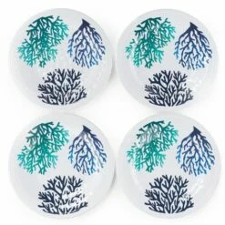Add a subtle under-the-sea motif to your indoor or outdoor eating area with a Coastal Melamine Dinnerware Set. Sold in sets of 4, these sturdy, lightweight plates won’t break if you drop them. They are perfect for both everyday and special occasion use. Made from: MelamineMeasurements:Set of 4 Dinner Plates, 10-5/8″ dia., eachSet of 4 Salad Plates, 8″ dia., eachCare:Dishwasher safeNotes:Not for use in microwave