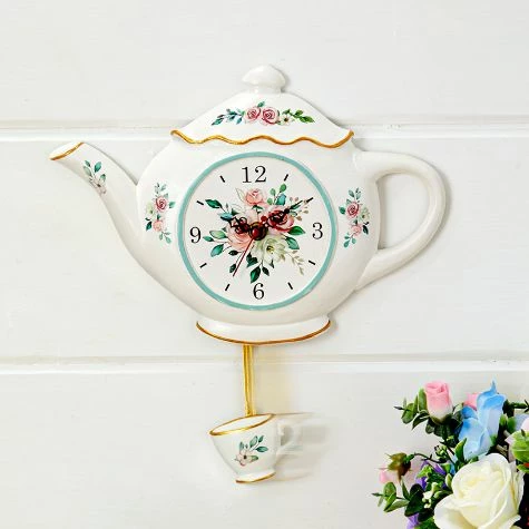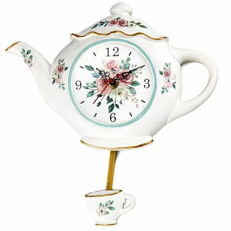 Accent your kitchen with this Coffee or Tea Pendulum Wall Clock. A lively conversation piece, it pairs well with traditional, farmhouse or boho decor. Coffee11″W x 17-3/8″LMetal and plasticRequires 1 “AA” battery Assembly required; assembly hardware includedTea11-1/2″W x 12-7/8″LMetal and plasticRequires 1 “AA” battery Assembly required; assembly hardware included