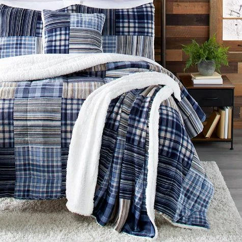 Snuggle up with this Coleman Wesson Patch Plush Sherpa Throw or Pillow. The throw is sure to keep you warm and cozy. The face of the throw is a blue and gray plaid on plush fabric. It reverses to a white sherpa backing. The pillow will give you a comfy place to rest your head or support your back. Throw50″ x 60″PolyesterMachine care ImportedPillow20″ sq.Polyester with polyfillImported