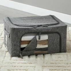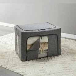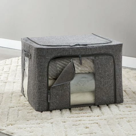 Keep closets, shelves and other spaces neat and tidy using these Collapsible Storage Boxes with Windows. They offer organization with style and a decorative touch. Each has a stackable metal frame which maintains its full shape. It also collapses when not in use to save space. Two clear windows let you see what’s inside, and two zip flap doors make it easy to move items in and out. The handled boxes conveniently store out-of-season clothing, bedding, linens, holiday decorations, baby clothes and more. Small Storage Box15″W x 12″D x 7-1/2″H, expanded and 16″W x 13″L, colllapsedPolyester, MDF, steel and PVCMedium Storage Box19-1/2″W x 16″D x 13″H, expanded and 20″W x 17″L, collapsedPolyester, MDF, steel and PVCLarge Storage Box23-3/4″W x 16-1/2″D x 15″H, expanded and 24″W x 17-1/2″L, collapsedPolyester, MDF, steel and PVC