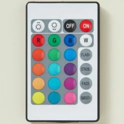 Party at your house! Set the mood with this Color-Changing Light Bulb. Choose from 16 different colors, standard soft white and energy saving. Turn the LED bulb on and off and switch between colors with the included remote control. 30,000-hour lifespan. 5-Watt bulb fits standard E26/E27 bases. Made from: ABS plastic, plastic and metalMeasurements: Approx. 3-3/8″ dia. x 5-1/4″H