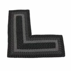 Accent your space with these beautiful Country Braided Corner Rugs. They all feature a braided texture and a classic stripe outline design. The Tan choice features shades of tan and natural, Black includes black and dark gray, and Navy features various shades of blue. Each rug is L-shaped to fit in corners. Made from: PolypropyleneMeasurements:4 ft. x 4 ft.5 ft. 8 in. x 5 ft. 8 in.Notes:Imported