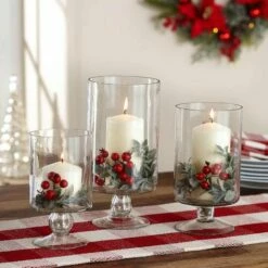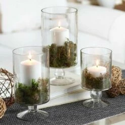 Use this footed glass jar to hold candy, a candle or other decor items. It’s perfect for year-round or holiday decorating. Made from: GlassMeasurements: 8″ Jar, 4-1/2″ dia. x 8″H9-1/2″ Jar, 5″ dia. x 9-1/2″H11″ Jar, 5-1/2″ dia. x 11″H