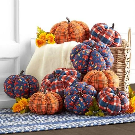 Spice up your home for the season with this Decorative Harvest Plush Pumpkin. Made from: Polyester with polyfillMeasurements:Small, 3-3/4″ dia. x 5″HMedium, 4-1/2″ dia. x 6″HLarge, 5-3/8″ dia. x 7-7/8″H