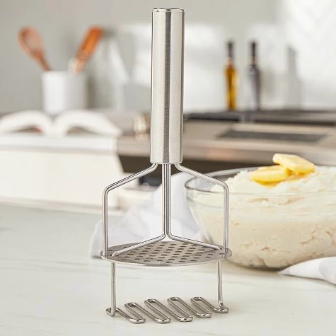 Break down food more efficiently with this Dual Blade Masher. The spring-loaded handle gives you twice the mashing power–perfect for potatoes, cooked fruits and veggies, eggs and more. Made from:Stainless steelMeasurements:4-1/4″W x 3-3/8″D x 9-3/4″HCare:Dishwasher safe