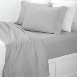 Refresh your bedding with this Essential Microfiber Solid Sheet Set. Microfiber material is super-soft and easy to care for. Comes in classic colors to coordinate with any bedding. Fitted sheets have a 15″ pocket. King set includes king-sized pillowcases. Made from: PolyesterSet includes:- Flat sheet- Fitted sheet- 2 Pillowcases (1 with Twin)Care: Machine careNotes: Imported