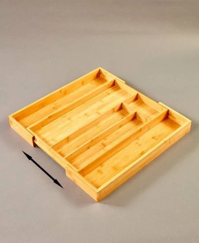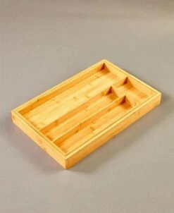 Organize your utensils or cutlery with this Expandable Bamboo Drawer Organizer. The Cutlery Organizer has 6 compartments when not expanded and 8 when expanded. The Utensil Organizer has 4 compartments when not expanded and 6 when expanded. Fits most drawers. Cutlery Organizer13″W x 2″D x 18-1/8″H; expands to 20-1/2″WBamboo and MDFUtensil Organizer11-7/8″W x 2″D x 18-1/8″H; expands to 19″WBamboo and MDF