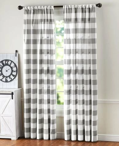 Trim your windows with this Farmhouse Check Window Panel or Valance. Each panel features a pattern of gray buffalo checks on a white background. The Valance shares the same clean design. Each includes a rod pocket for easy hanging. Valance52″W x 18″LPolyester Machine careImported 63″ Panel52″W x 63″LPolyester Machine careImportedSold individually; 2 panels shown 84″ Panel52″W x 84″L Polyester Machine careImportedSold individually; 2 panels shown