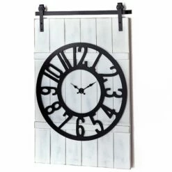 Give your home a modern farmhouse makeover with this Farmhouse Decor Collection. The 2-Tier Wood Display is a novel way to show off decor items. The Barn Door Wall Clock features a metal clock face on a background that looks like a white barn door. Lighted Wall Sconce adds light to a room. Plugs in and comes with a chicken wire shade. 2-Tier Wood Display15″ dia. x 18-5/8″HMDF and woodBarn Door Wall Clock13-3/8″W x 1-3/8″D x 15-3/4″HWood and metalRequires 1 “AA” batteryLighted Wall Sconce8-1/2″W x 6-1/2″D x 12-1/2″HMetal