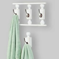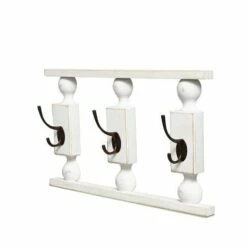 Hang jackets, scarves, caps and more on these Farmhouse Wall Hooks. They can also serve as decor holding a basket, wreath or other decorative accent. They’re made of carved wood, inspired by vintage country woodworking, with black metal hooks. Available as a single hook and as 3 hooks on one piece. Made from: Wood and metalMeasurements:Single, 2-1/4″W x 4-5/8″D x 9-1/8″HMulti, 17″W x 3-1/2″D x 10-3/8″HNotes: Assembly required; assembly hardware included