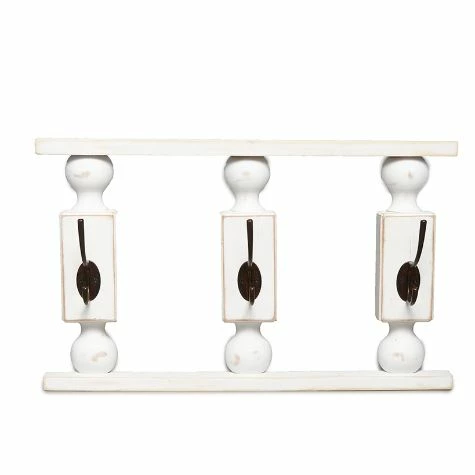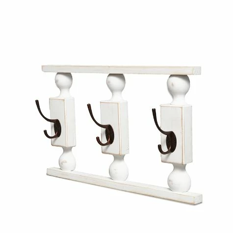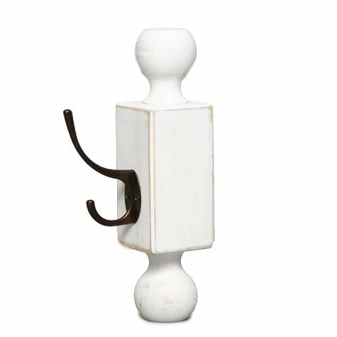 Hang jackets, scarves, caps and more on these Farmhouse Wall Hooks. They can also serve as decor holding a basket, wreath or other decorative accent. They’re made of carved wood, inspired by vintage country woodworking, with black metal hooks. Available as a single hook and as 3 hooks on one piece. Made from: Wood and metalMeasurements:Single, 2-1/4″W x 4-5/8″D x 9-1/8″HMulti, 17″W x 3-1/2″D x 10-3/8″HNotes: Assembly required; assembly hardware included