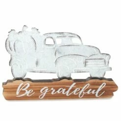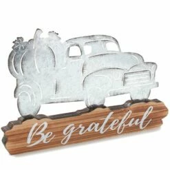 Enhance your Thanksgiving table with a Festive Tabletop Centerpiece. Base has an appropriate sentiment. This galvanized metal piece will give your dining room table a harvest feel. Made from: MDF and metalMeasurements: 18″W x 1″D x 12″H