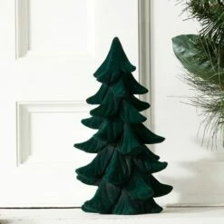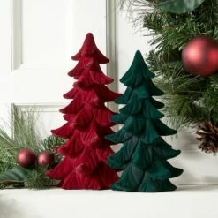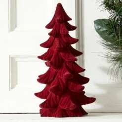 Add holiday decor to a shelf, table or countertop in your home or office with this tabletop Flannel Tree. Made from: Polyester and plasticMeasurements: Green, 5-3/4″ dia. x 10″HBurgundy, 6-1/4″ dia. x 12″H