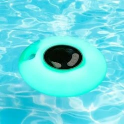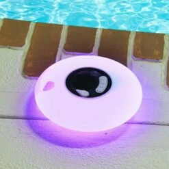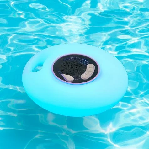Enjoy your favorite music on the pool deck with this Floating LED Bluetooth Speaker. No more worries about water damage to your speaker! This one lights up with LED lights. It’s Bluetooth enabled for easy pairing with your smartphone or other Bluetooth-enabled devices. Has a 1,200 mAh capacity and a 4 to 5 hour playtime. Includes a battery that recharges via USB. Made from: ABS plasticMeasurements: 7-7/8″ dia. x 2-5/8″H