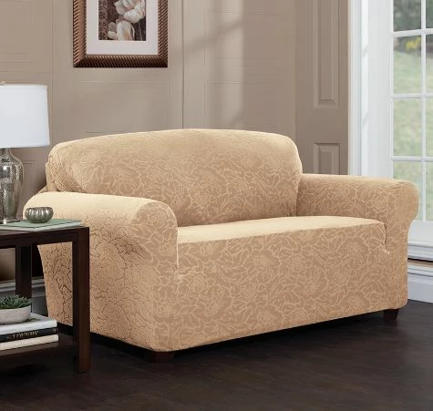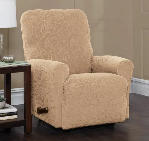 The Floral Stretch Slipcover is perfect for protecting new furniture or rejuvenating a well-loved older piece. Made with spandex for a snug fit, it features 4-way stretch and an elastic band at the bottom to keep it in place. Tuck any extra fabric into the seams. Made from: Polyester and spandexMeasurements: Recliner max. size, 36″W x 24-1/2″D x 40″HJumbo Recliner max. size, 23″W x 24″D x 42″HWing Chair max. size, 42″W x 30″D x 31″HLoveseat max. size, 54-3/4″W x 32-1/4″D x 40″HSofa max. size, 71-1/2″W x 32-1/2″D x 40″HCare: Machine wash and line dryNotes: Imported