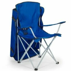 Enjoy cool shade or protection from the rain with this Folding Chair with Cover. Built-in brackets lock the cover in place. To use without the cover, just fold it back. Features 1 cup holder. Perfect for camping, the beach, at sporting events or for tailgating. Folds into a case with a handle. Made from:Polyester, steel and plasticMeasurements:21-1/4″ sq. x 53″H with cover 46-1/2″H with cover folded downNotes:Imported