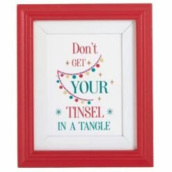 Perk up the Christmas decor in your home with this Framed Wall Art. Its bright red or green frame will make it a standout on your wall. And the fun saying will put a smile on everyone’s face and get them into a holiday mood. Made from: MDFMeasurements: 9-7/8″W x 11-7/8″L