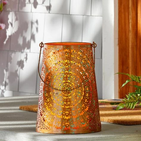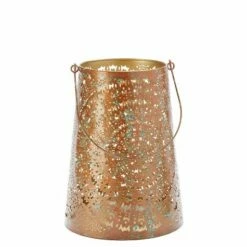 Light up your home and garden with this Gold Pierced Hurricane Lantern. Place it anywhere using your own LED candles to set a festive and calming mood. The beautiful piercing design gives off elegant light patterns Made from:MetalMeasurements:Small, 7″ dia. x 9″HMedium, 9″ dia. x 12″HLarge, 12″ dia. x 16″H